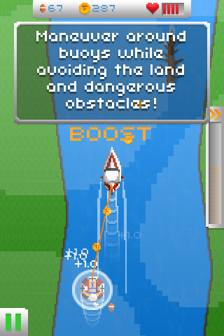 Are you ready for a fast paced skiing competition? Test your skills as you maneuver around buoys while avoiding the land and dangerous obstacles. Collect coins to earn Boost and purchase upgrades in the boatyard. Unlock increasingly difficult and exciting new zones. Challenge your friends to become the Buoy Master!
